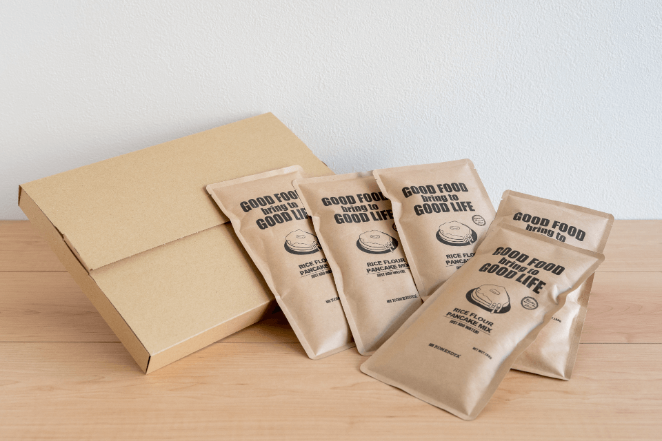 長崎県産米100%の米粉で作るパンケーキミックスは、卵なし・牛乳なしで、水を混ぜて焼くだけの手軽さです。